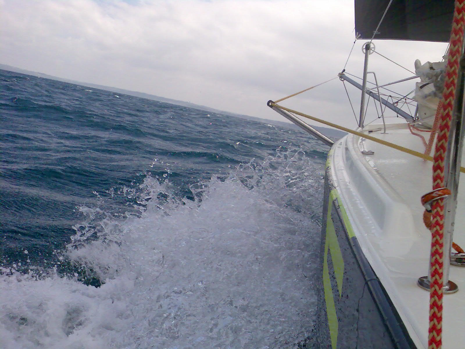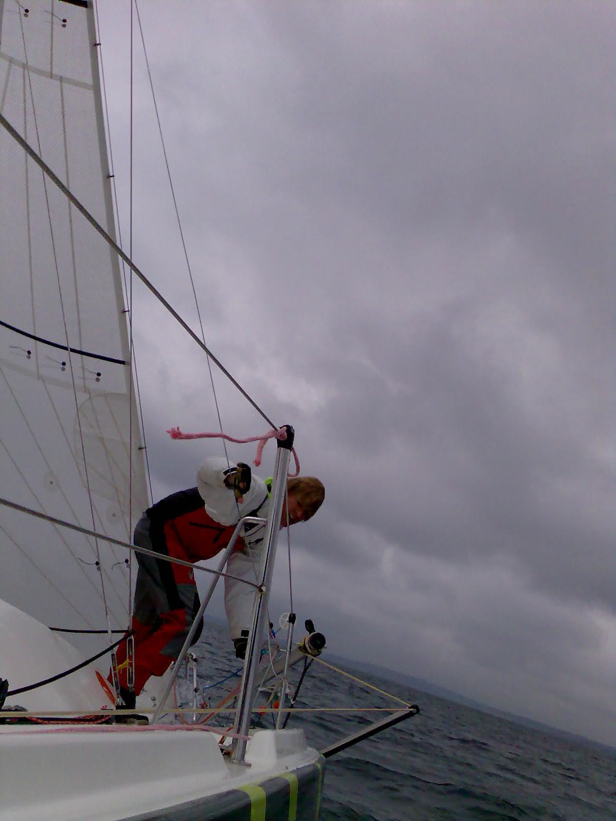 Even kijken of alles weer werkt en zeilt. Na 13 knopen snelheid te hebben gevaren, 2 reven te hebben gezet, kunnen we met een gerust hart zeggen. Ze vaart wel.