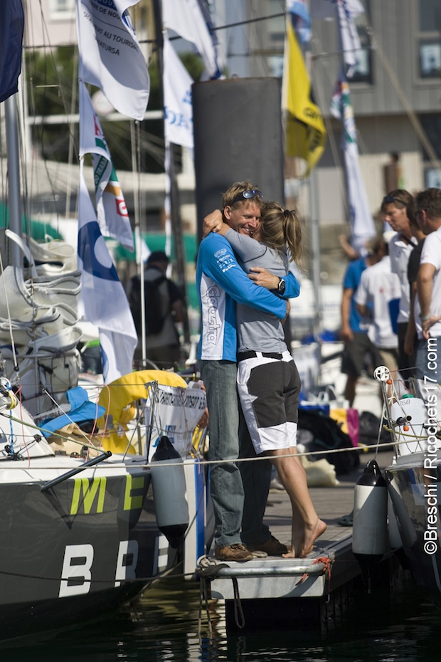 Bij elke boei werden de deelnemers door de ontelbare toeschouwers toegejuicht. Alsof er een soort voetbalhelden voorbij kwamen zeilen. Deze zeilgekke avonturiers, die in hun piepkleine raceboten in weer en wind de oceaan oversteken, genieten in Frankrijk een heldenstatus.