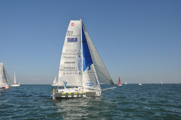 In deze eerste etappe van La Rochelle Frankrijk naar het Portugese eiland Madeira lag Ysbrand Endt na twee uur zeilen op een bijzonder goede positie. In de standaard klasse (identieke boten) lag Endt op een tweede plaats.
